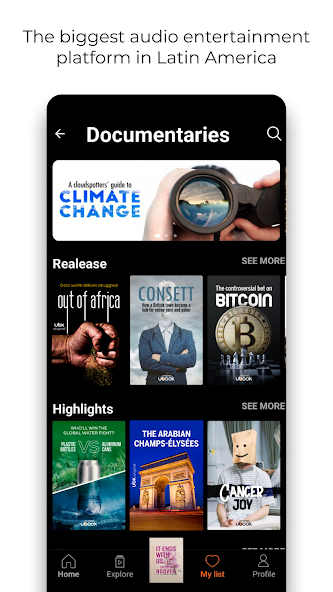 Ubook is a content streaming platform that offers a variety of books, podcasts, and documentaries for reading and listening.
