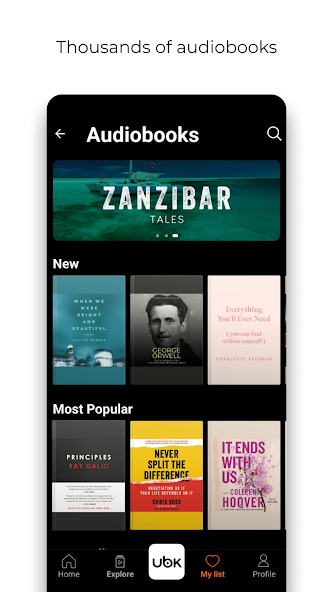 Install Ubook now and have a world of content to read and listen to in the palm of your hand. Perfect for fitting into your routine and making every minute of your day count. Discover and listen to great stories while commuting to work, tidying the house, exercising, or on any other occasion.