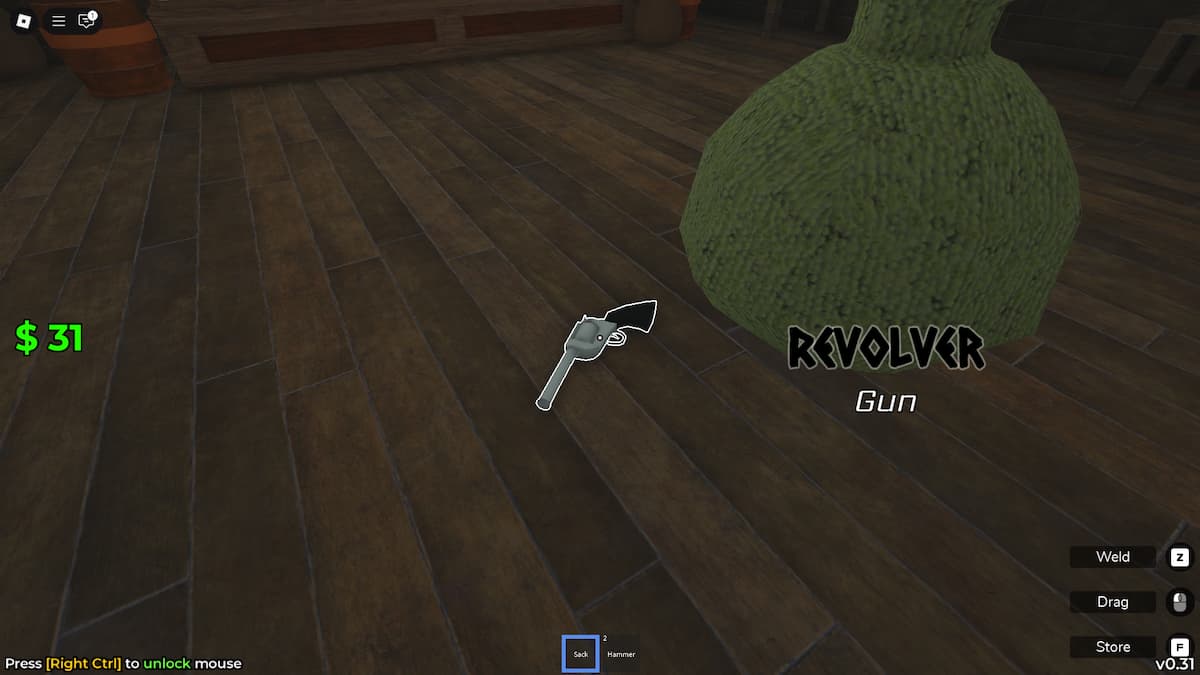 How to Store Items: While the Sack is equipped (in your hands), look at the item you want to pick up so your aiming dot is over it. Then, press the 'F' key. Poof! The item goes right into your Sack.