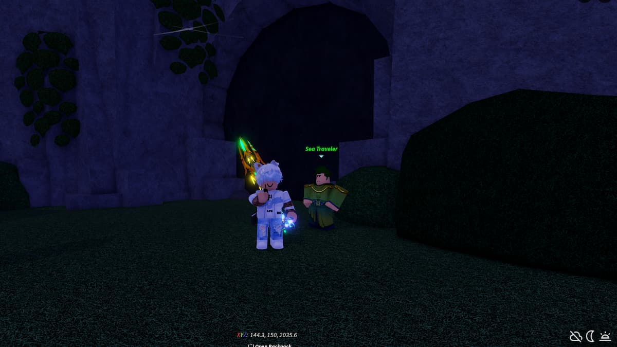 Now, to travel to the Second Sea in Fisch, you have to speak to the Sea Traveller NPC at Terrapin Island ( X:144.3, Y:150, Z: 2035). You can find him wearing a green Cthulhu uniform and standing near a cave.
