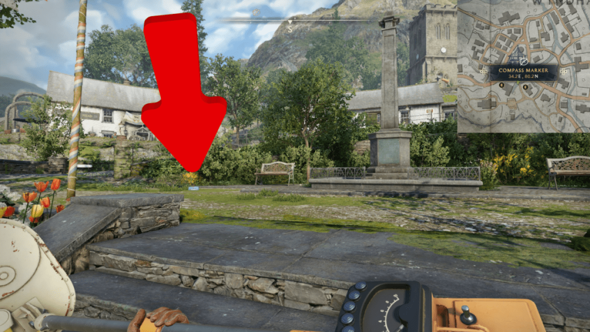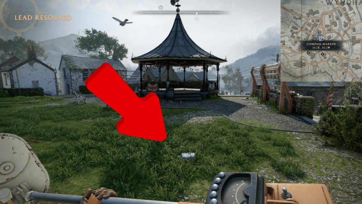 To complete the first Buried Treasure Lead and get the “Enhanced Supply Bundle” Pack, head to the Village Green just northwest of Grendel’s Head. Be sure to track the Lead and open the map to mark the location on your compass as we’ve done above to make finding it even easier.