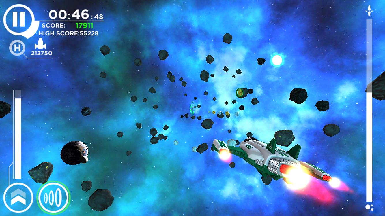 Booster coins and powerful repulsors: Pick up coins as you play then buy free power-ups to help you boost your score in subsequent play throughs. Use the powerful repulsors or add more power-ups to shield your spaceship from impact.